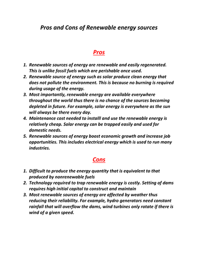 Fossil Fuels Vs Renewable Energy Pros And Cons